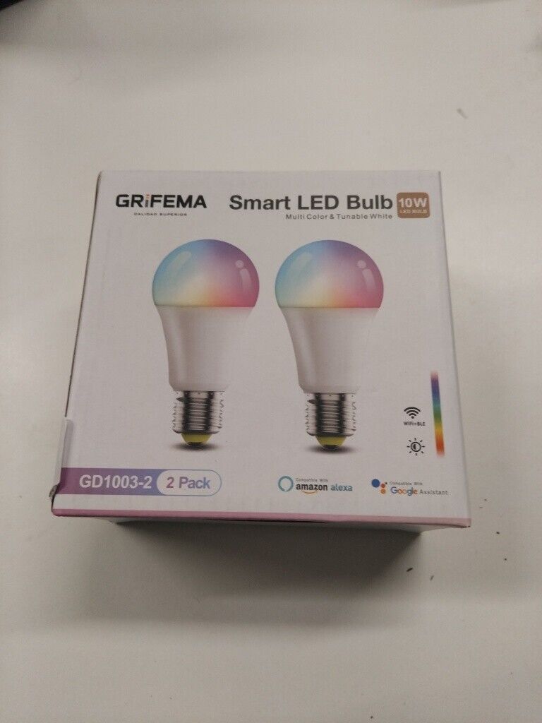 2 PackGRIFEMA E27 Smart Bulb, Colour Changing Alexa Light Bulbs, Work Alexa, 10W