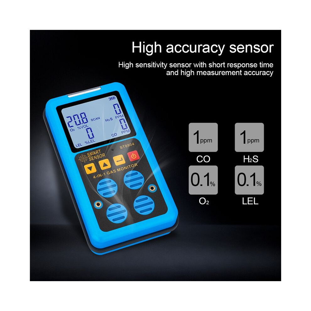 Smart Sensor Gas Detector Oxygen O2 Hydrogen Sulfide H2S Carbon Monoxide CO Combustible Gas LEL Gas Meter