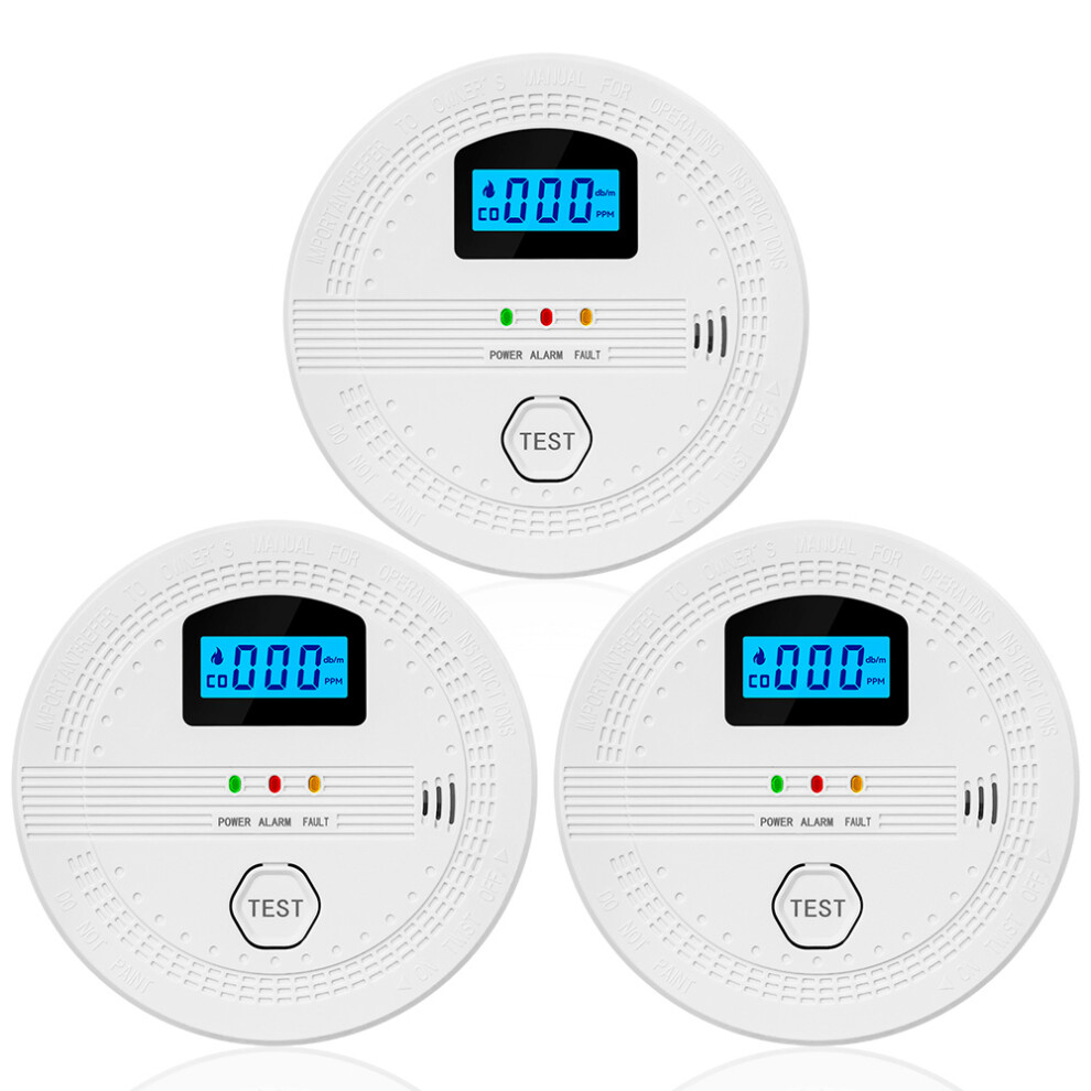 3 Packs Smoke and Carbon Monoxide Detector 2 In 1 CO and Smoke Detectors LCD Display Smart Detector Sound Light Alarm Low Battery Warning S