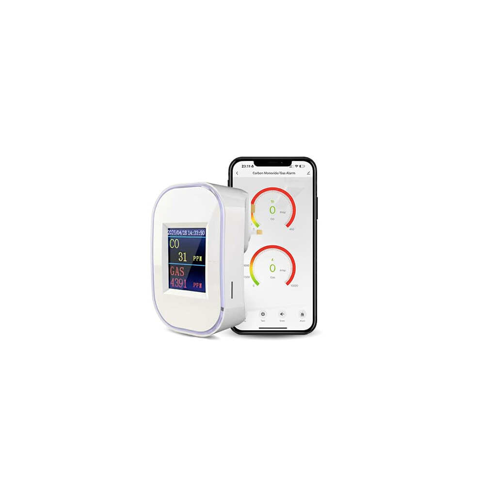 WiFi Smart Carbon Monoxide & Natural Gas Detector, 2 in 1?Plug-in, CO Gas Leak Alarm for Natural Gas, LPG, Methane, Propane & Butane, App Monitoring &