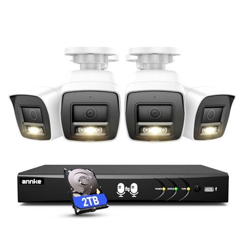 ANNKE 2-Way Audio 8CH DVR 3K Security Camera System, 4X 2MP CCTV White Wired Cams with Color Night Vision, AI Motion Detection, Smart AcuSearch, IP67, 2TB HDD for Surveillance