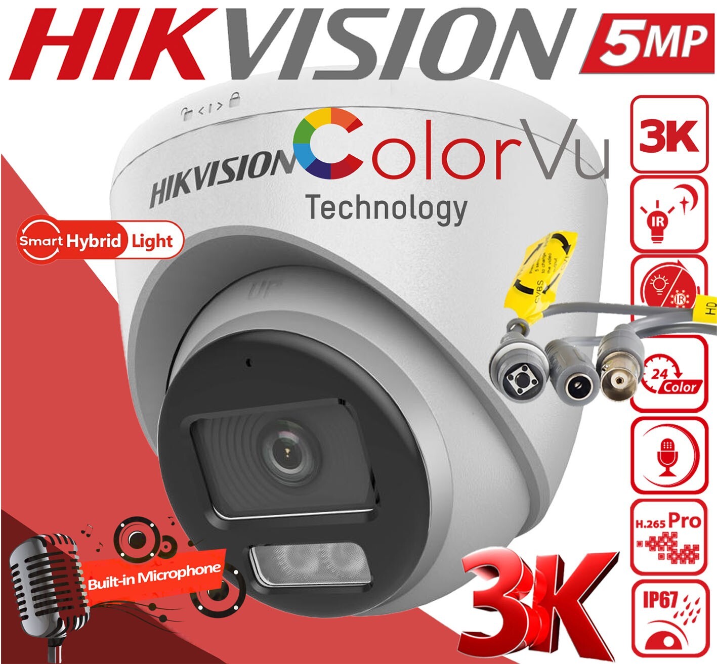 HIKVISION OEM CCTV COLORVU 5MP Audio In Mic CAMERA IP67 Night Vision SMART LIGHT