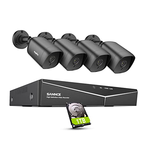 SANNCE 1080P CCTV Security Camera System 8CH, 8 Channel Digital Video Recorder, 4x 2MP Analog Surveillance Cameras IP67 Outdoor, Smart Human Detection, 1TB HDD
