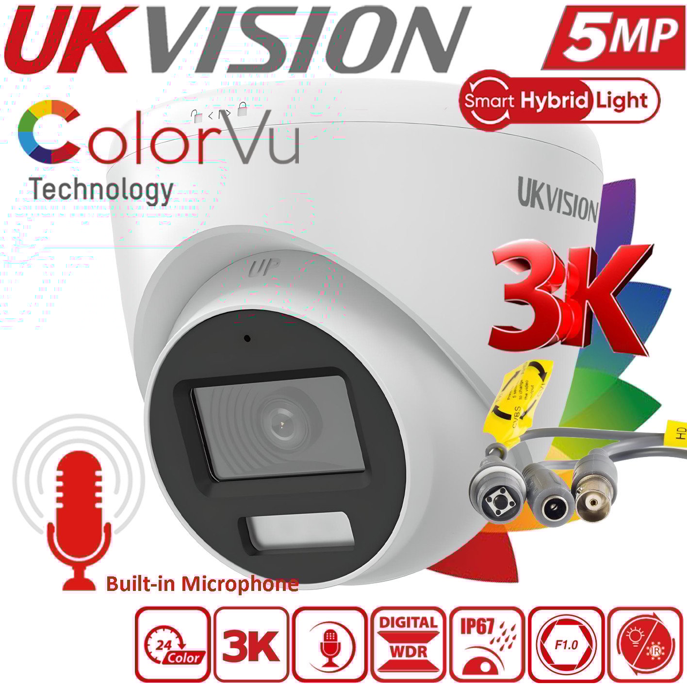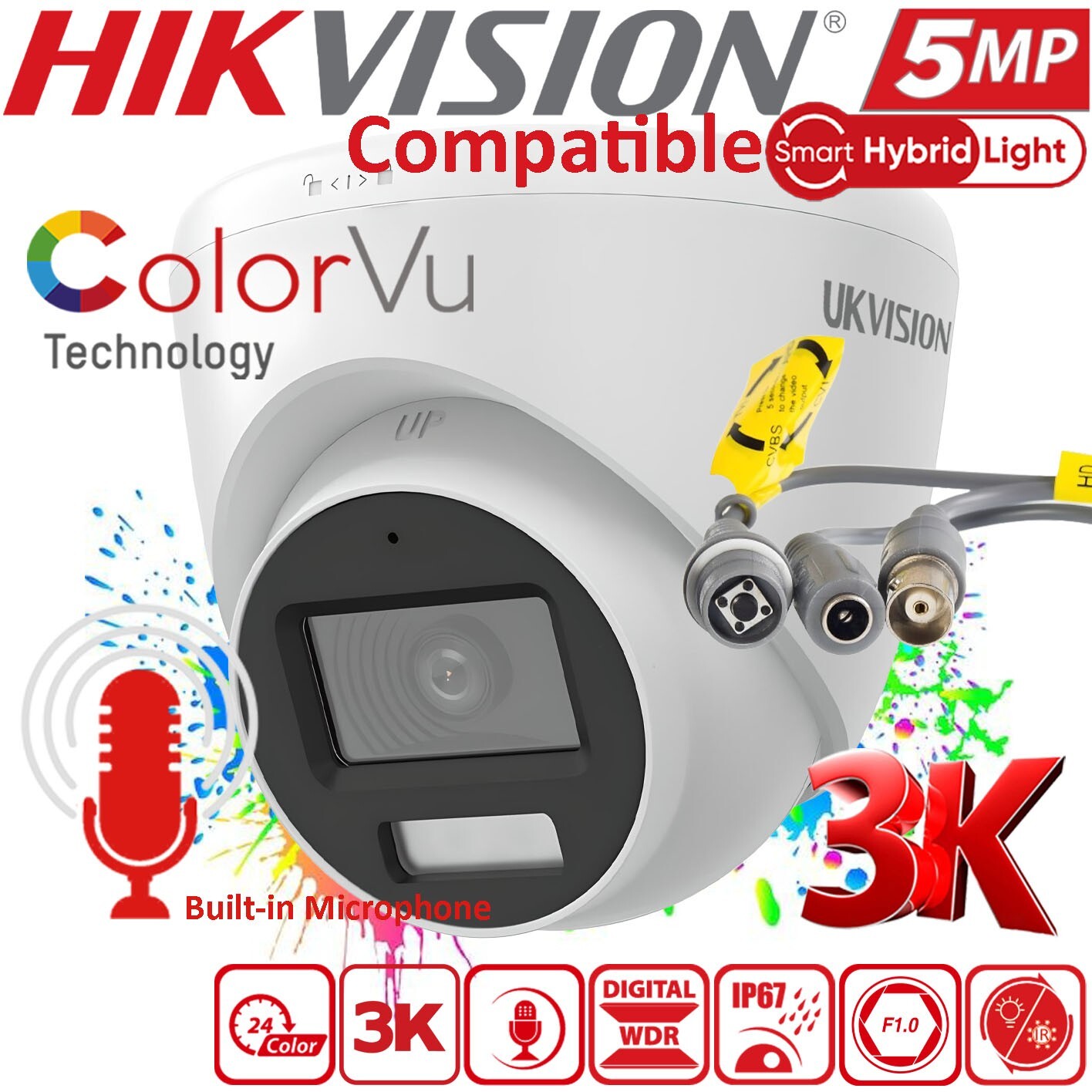3K 5MP ColorVu Smart Hybrid Light CCTV Camera 2.8mm Mic Night Vision IP67