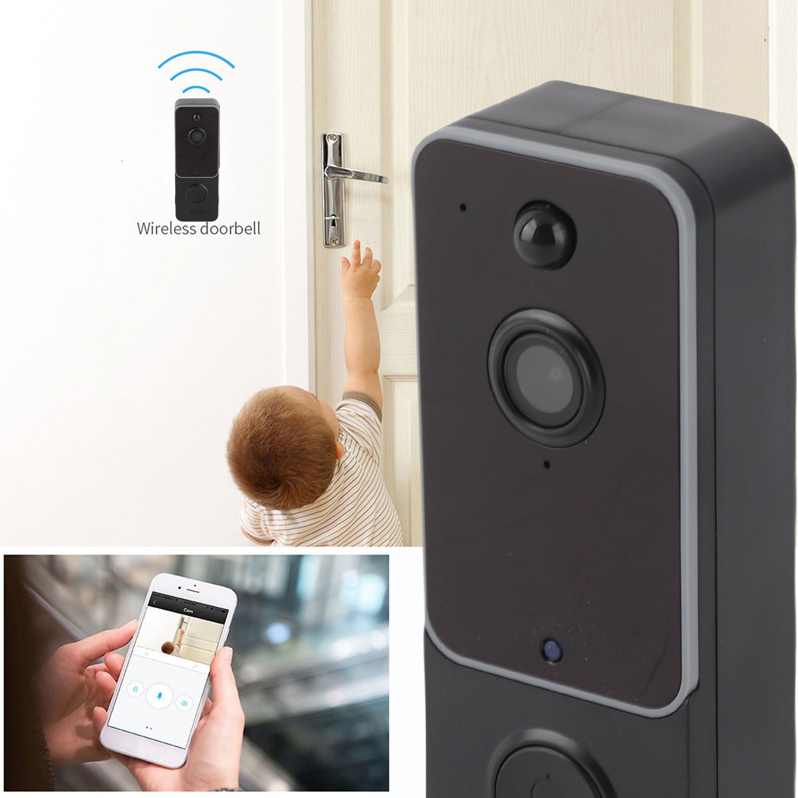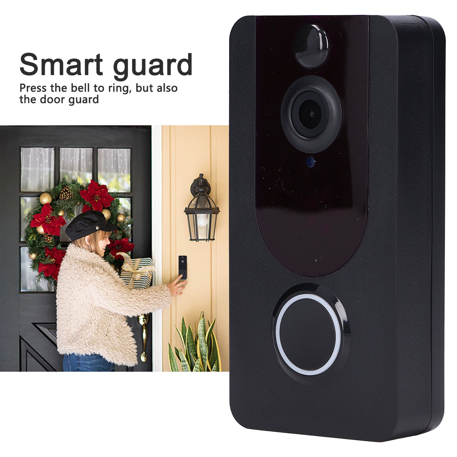 Walmeck Wireless Smart Video Doorbell Camera Night Viewing Intercom System for Villa Home Office (Black)