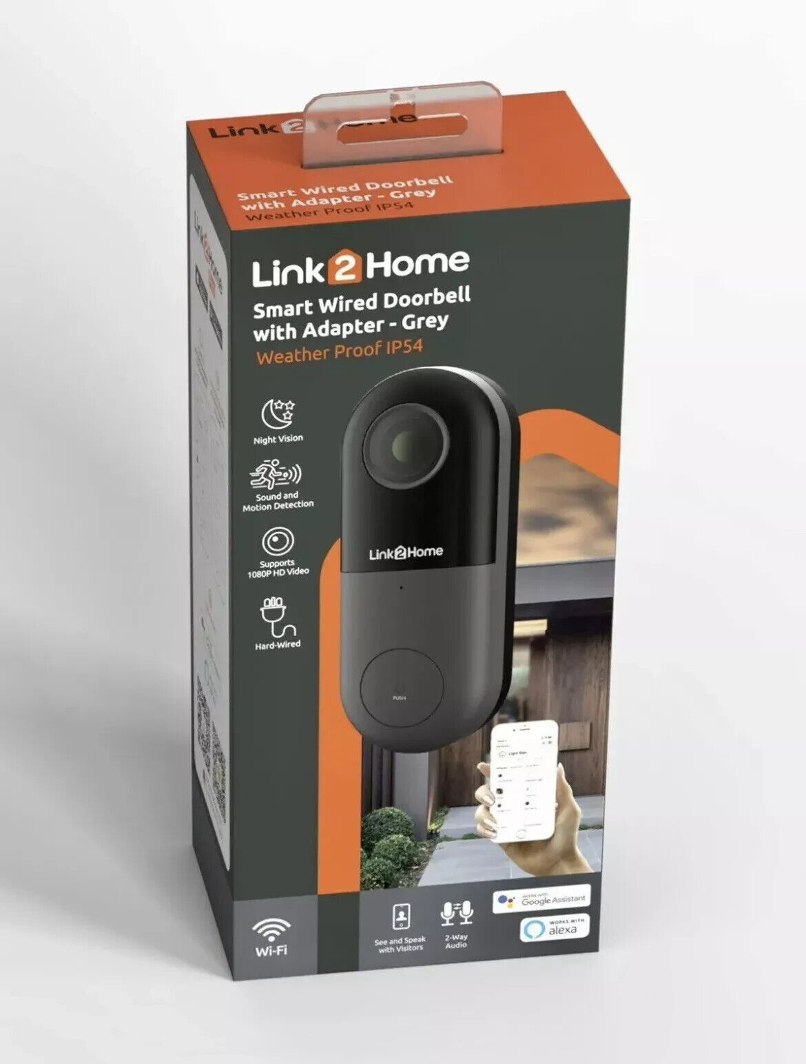 Smart Camera Doorbell Link2Home Wired Smart App Doorbell Weatherproof Grey (New)