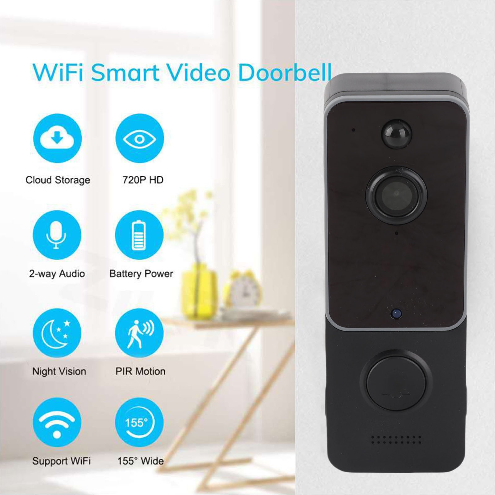 ・Smart Doorbell Camera HD Wide Angle 2 Way Sound Live Video Visual Doorbell