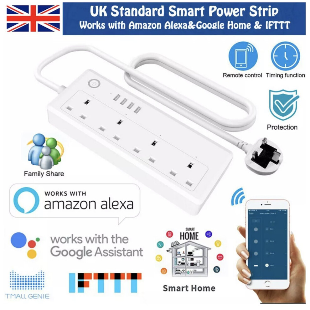 Smart Wifi Socket Power Strip Extension Lead USB Plug Voice Control IOS Android Amazon Alexa Echo Google Home IFTTT