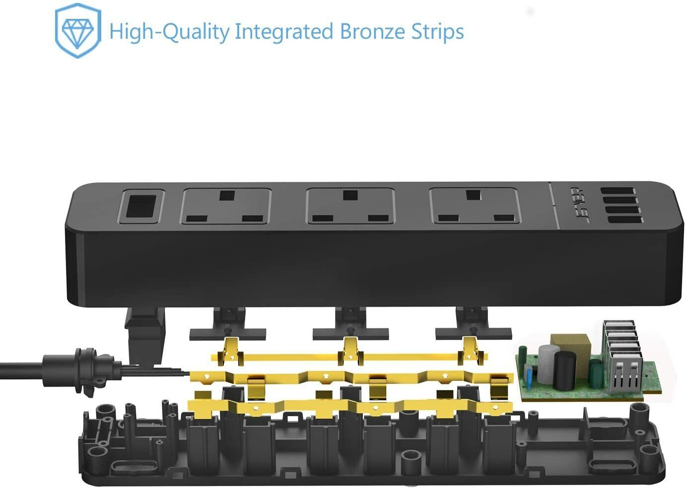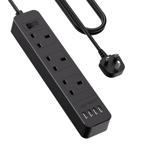 JSVER Extension Lead with 4 USB Ports Desktop Power Strip Smart Charging Station