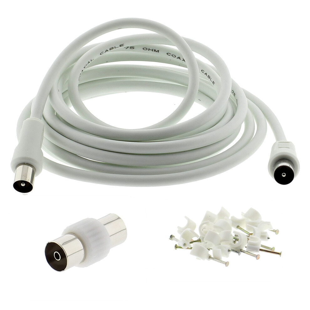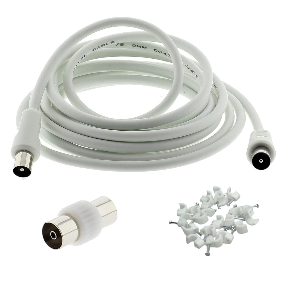 3C2V TV Coaxial Cable 4M - Nickel Plated RF Coax Extension Lead for Freesat, Aerial Socket, Freeview, Sat,DVD,VCR,SKY, Smart U-HD TV, Virgin, BT,