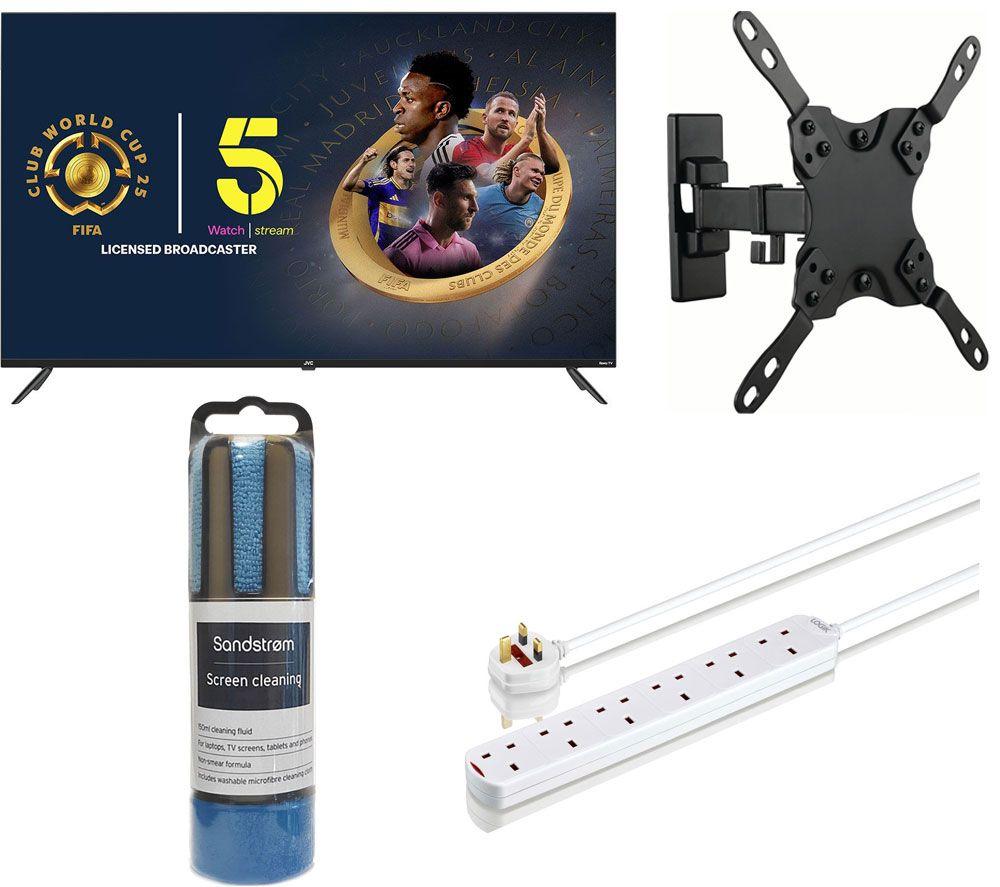 32" Jvc LT-32CR230 Roku TV Smart HD Ready HDR LED TV, Tilt & Swivel TV Bracket, Screen Cleaner & 6-Socket Extension Lead Bundle, Black