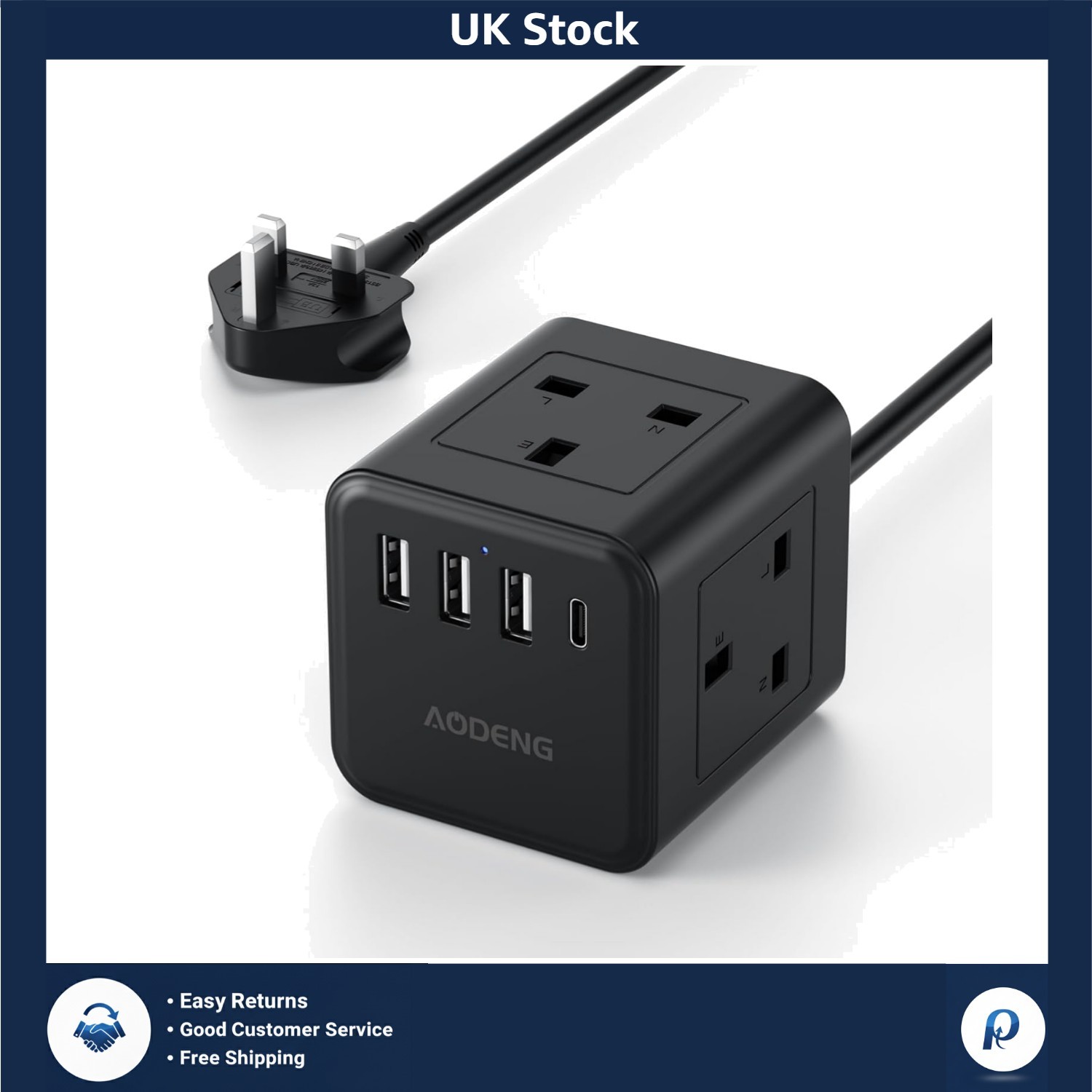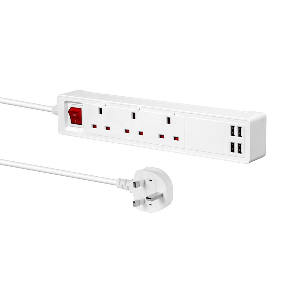 Smart USB Extension Lead - 3 Way Power Socket & 1.6m Cord, Safe for All Devices