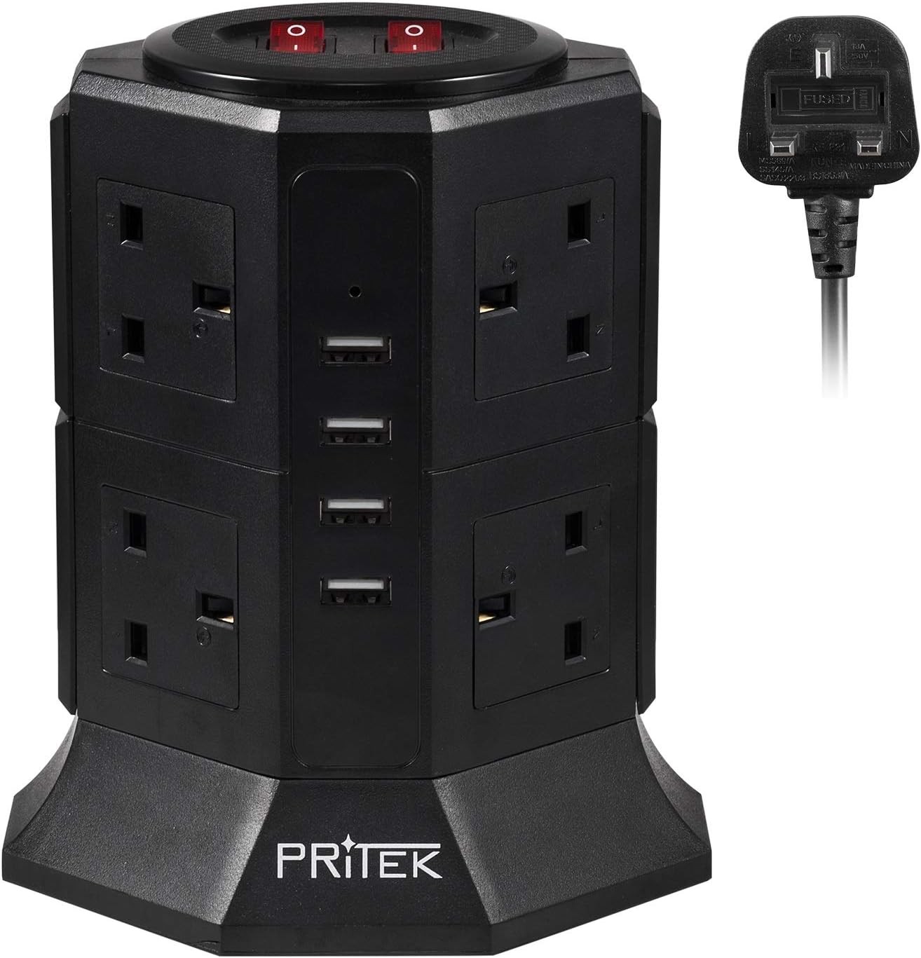 Extension Lead, PRITEK 8 Way Outlets Vertical Tower Power Strip with 4 Smart US