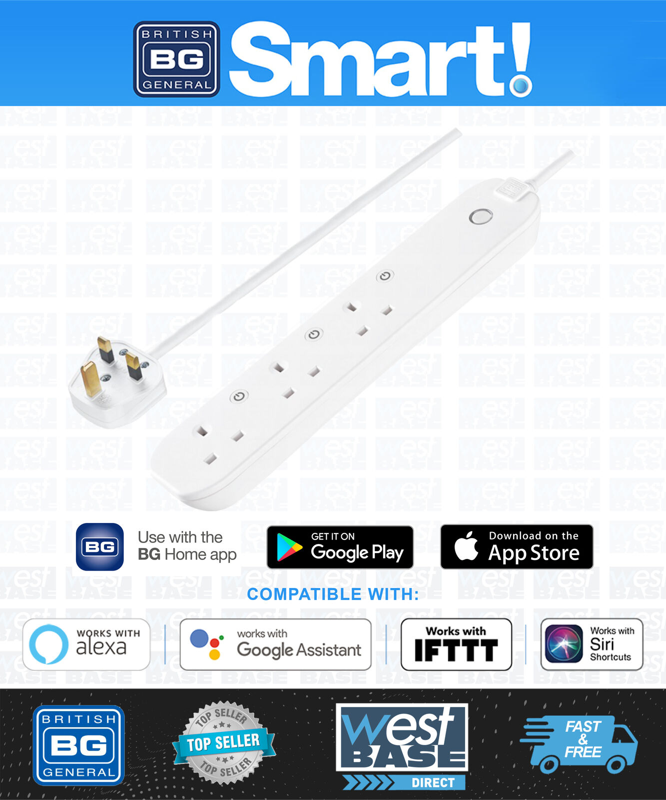 BG Smart EHC31 3 Gang Way Triple Socket Extension Lead 1m White Home App Control