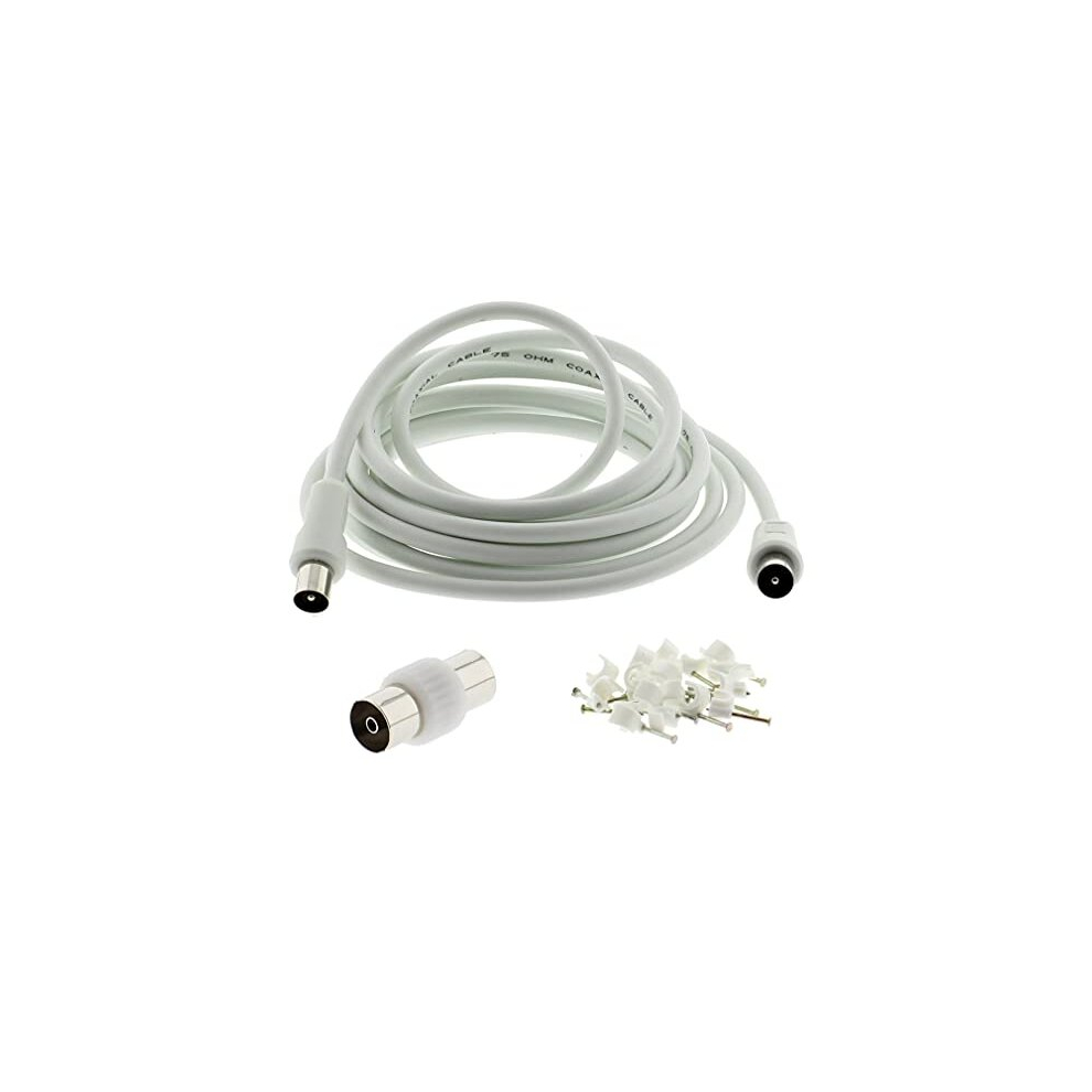 3C2V TV Coaxial Cable 2.5M - Nickel Plated RF Coax Extension Lead for Freesat, Aerial Socket, Freeview, Sat,DVD,VCR,SKY, Smart U-HD TV, Virgin, BT,