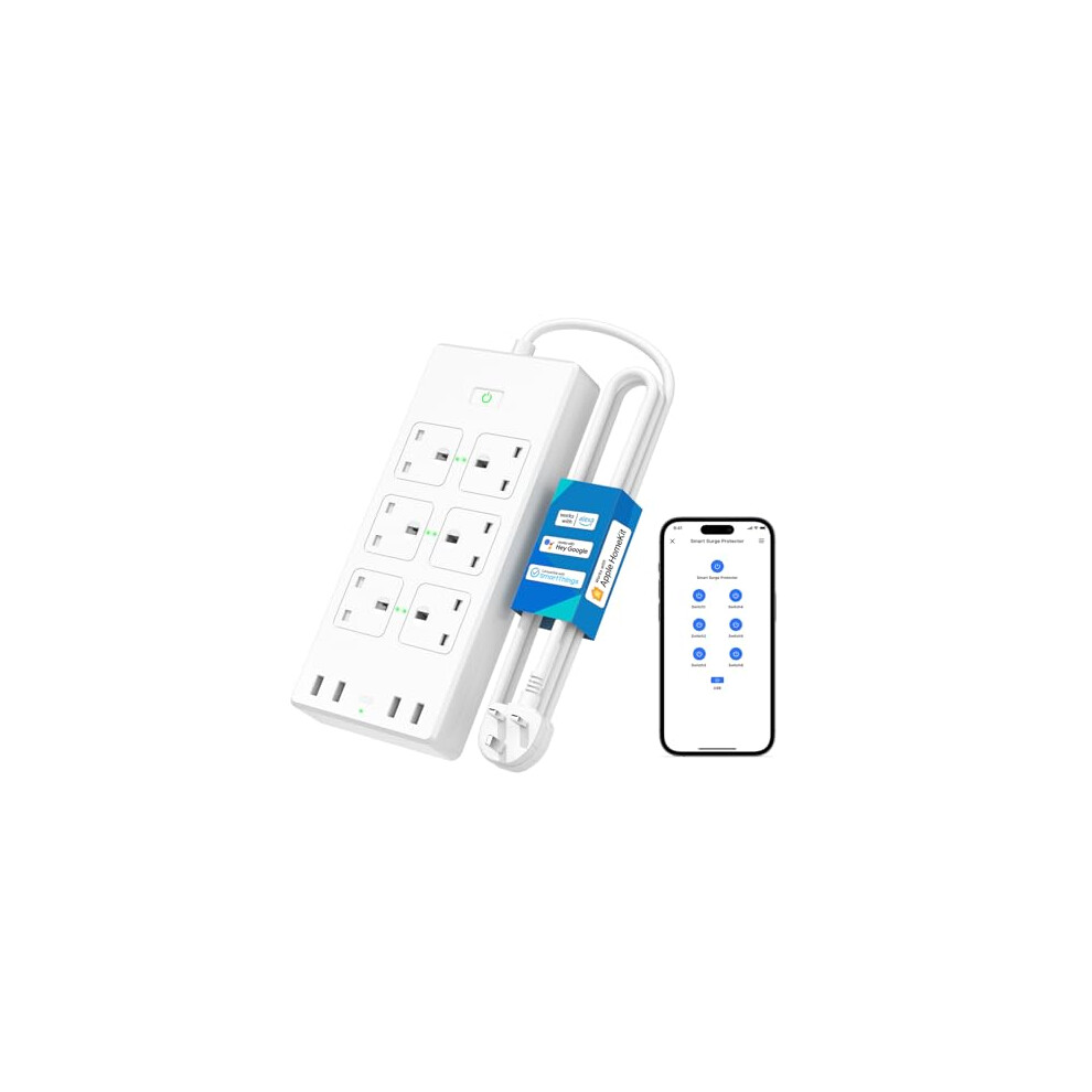 Meross Smart Power Strip with USB, 6 AC Outlets and 4 USB Ports, Alexa extension lead Compatible with Alexa, Google, SmartThings, 2.4GHz WiFi