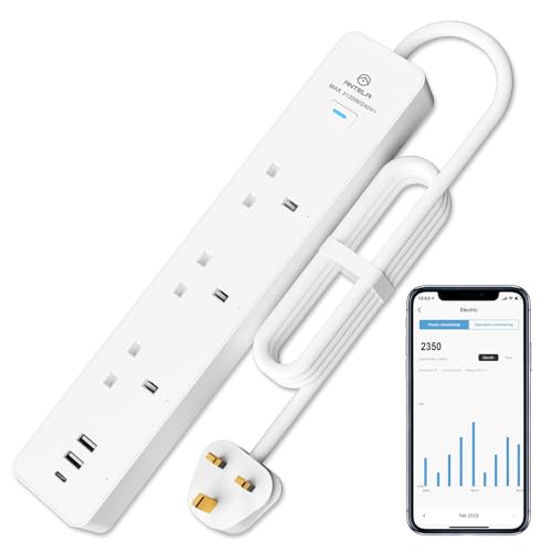 ANTELA Smart Power Strip Energy Monitoring, Smart Wifi Extension Lead with 3 Ou