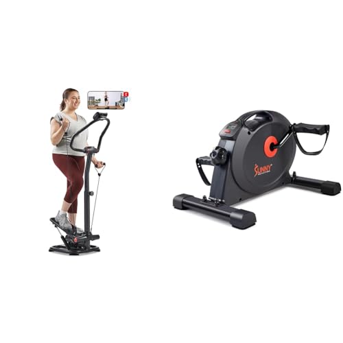 Sunny Health & Fitness Smart 2-in-1 Power Stepper with Resistant Bands & Handlebar + Under Desk Dual Function Smart Mini Pedal Exerciser Cycle Bikes with SunnyFit App