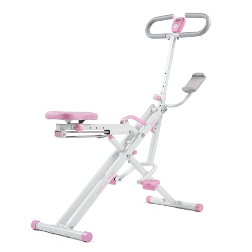 Sunny Health & Fitness Smart Row-N-Ride Squat Machine – Foldable Upright Trainer, Full-Body Workout for Glutes Quads Core, Adjustable Resistance Bands, Bluetooth SunnyFit App Sync, 150 kg Capacity