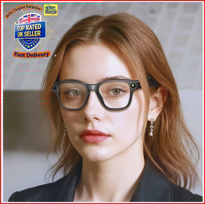 AI Smart Glasses with 800W HD Camera, Bluetooth, Blue Light Filtering Lenses and Builtin Speakers