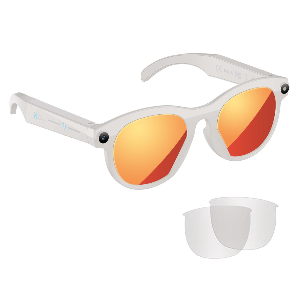Smart Glasses with Camera and Translation, AI Sunglasses Video Recording for Android iOS White