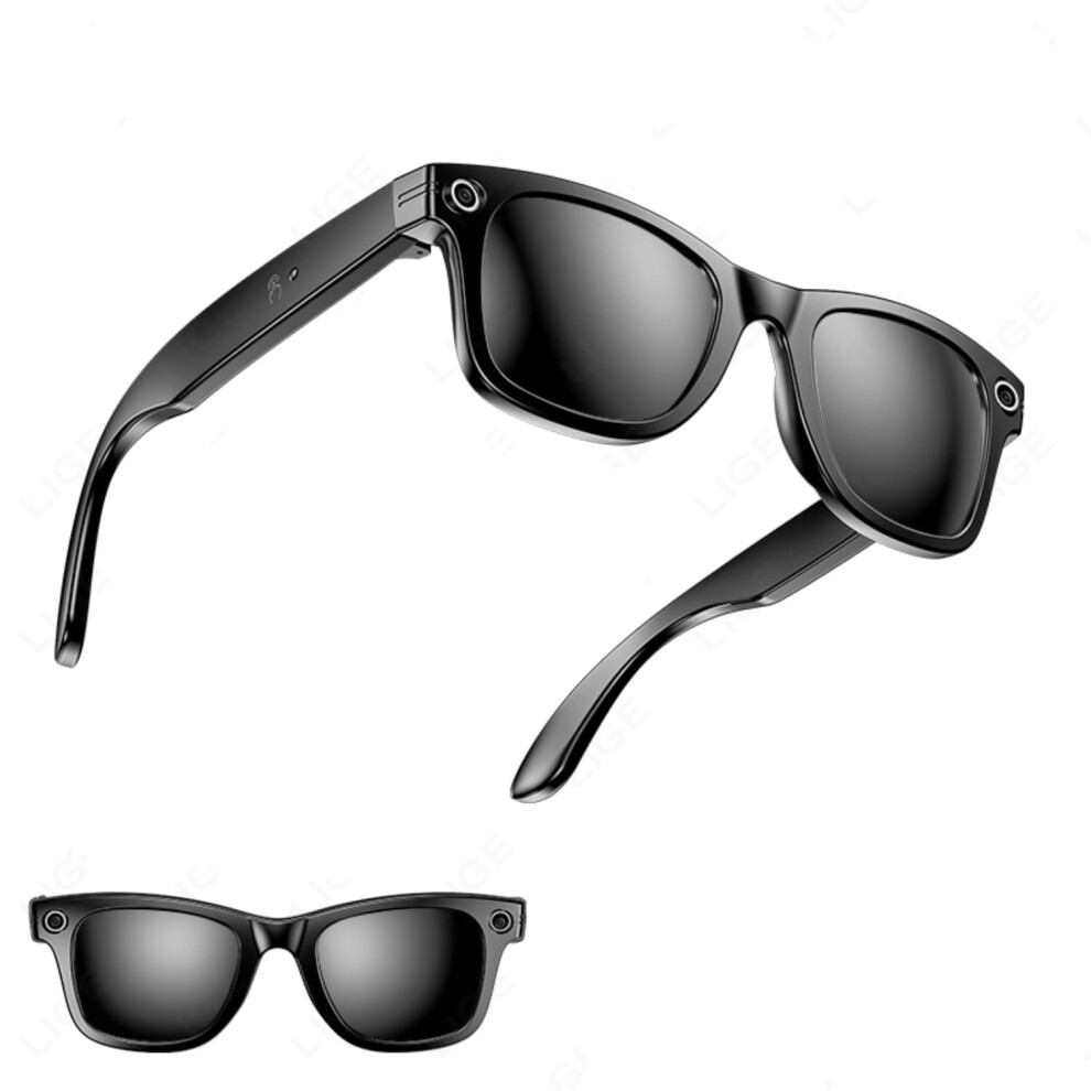 AI Smart Glasses with 1080P Camera Real Time Translation Hands Free Music and Calls 32GB Storage(Black)
