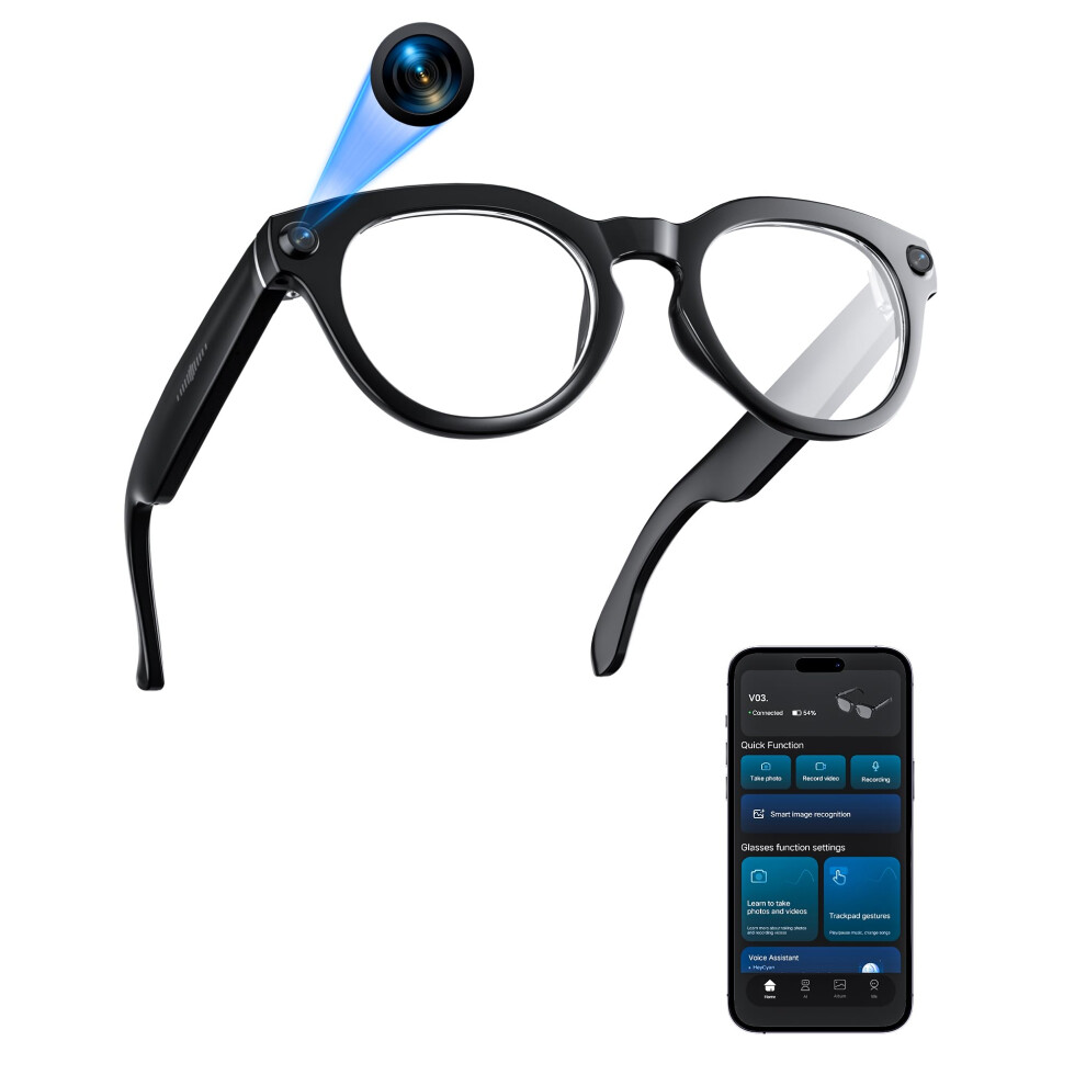 Cyanvue Ai Smart Glasses, 8mp Camera Glasses with Music & Call Features, Waterproof Ai Bluetooth Smart Eyeglasses with Camera, Sun Protection Anti-Blue Light Sunglasses for Men Women (Anti-Blue Light)