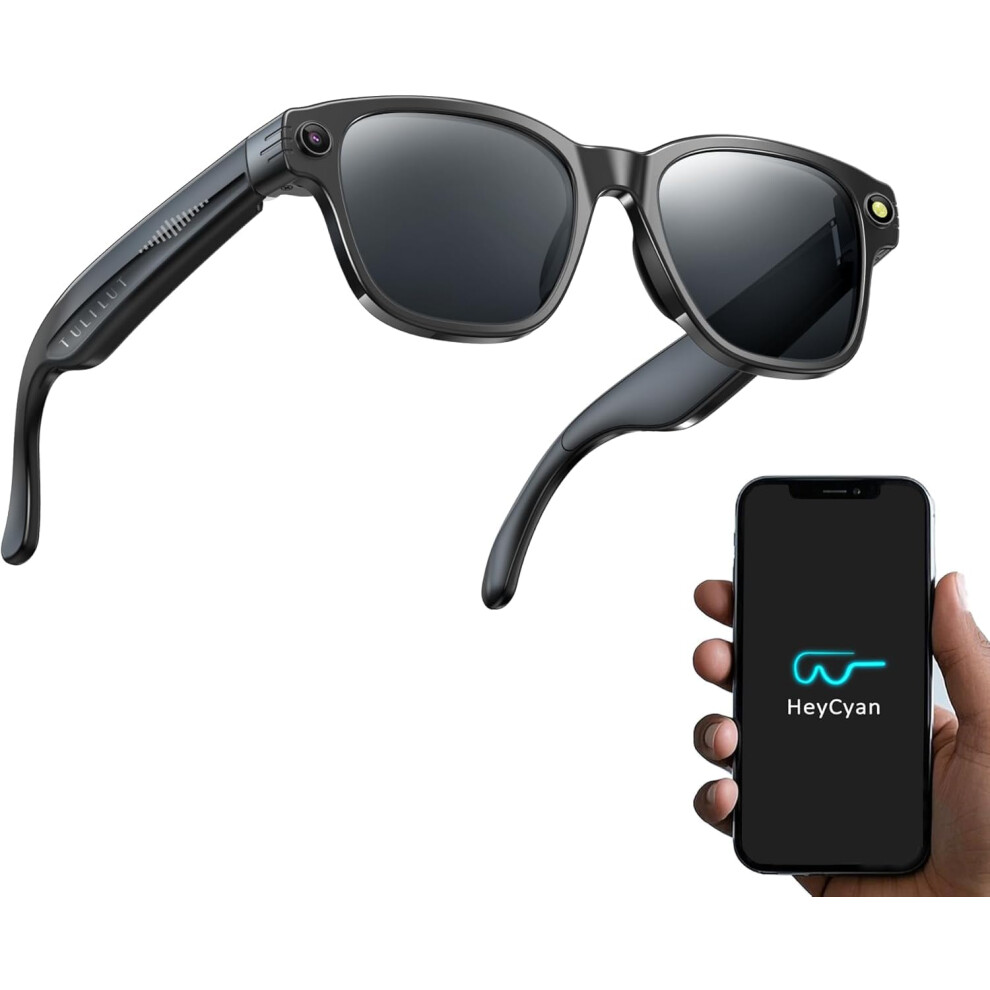 Cyanvue Ai Smart Glasses, 8mp Camera Glasses with Music & Call Features, Waterproof Ai Bluetooth Smart Eyeglasses with Camera, Sun Protection Anti-Blue Light Sunglasses for Men Women (Sunglasses)