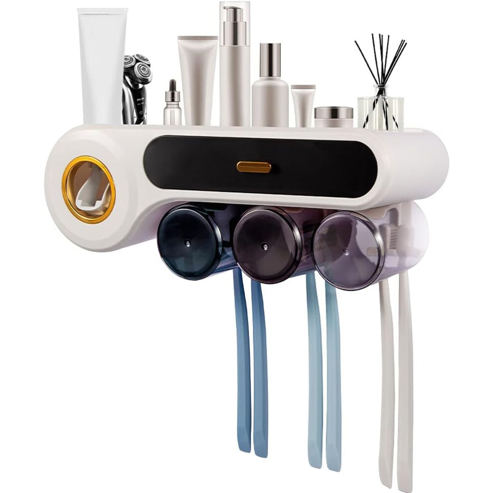 iHave Toothbrush Holder for Bathroom, UV Toothbrush Sanitizer and Holder Smart Home Bathroom Accessories, 3 Cups Electric Toothbrush Holder Wall Mounted with Toothpaste Dispenser Bathroom Decor
