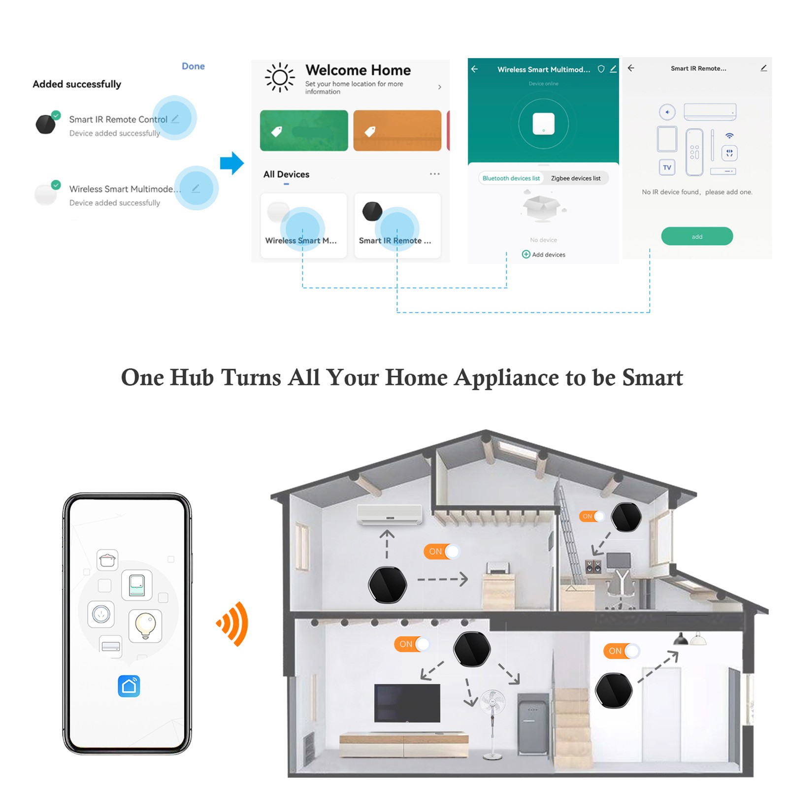 Multi Mode Smart Hub Gateway and Bridge Compatible with Zigbee Bluetooth Mesh and WiFi Protocols, Remote App and Voice Control for Smart Home Devices in Offices and Hotels