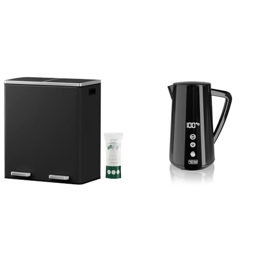 SONGMICS Double Rubbish Bin, 2 x 30L Waste and Recycling Kitchen Bin with 15 Rubbish Bags & Swan SK14650BLKN Alexa Smart Kettle, LED Touch Display, Keep Warm Function