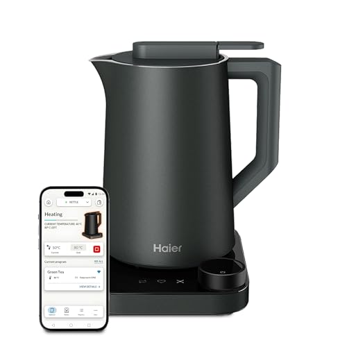 Haier Series 7 Smart Kettle with Temperature Control by 1 degree, LCD Display, 6 Automatic Programs, Keep Warm (up to 12hrs), Stainless Steel, Energy Saving, 1.3L, 3000W [Grey]