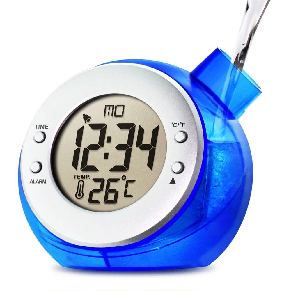 Smart Living Water Powered Multi Function Digital Battery-Free Kettle Shape Desk Clock in Blue