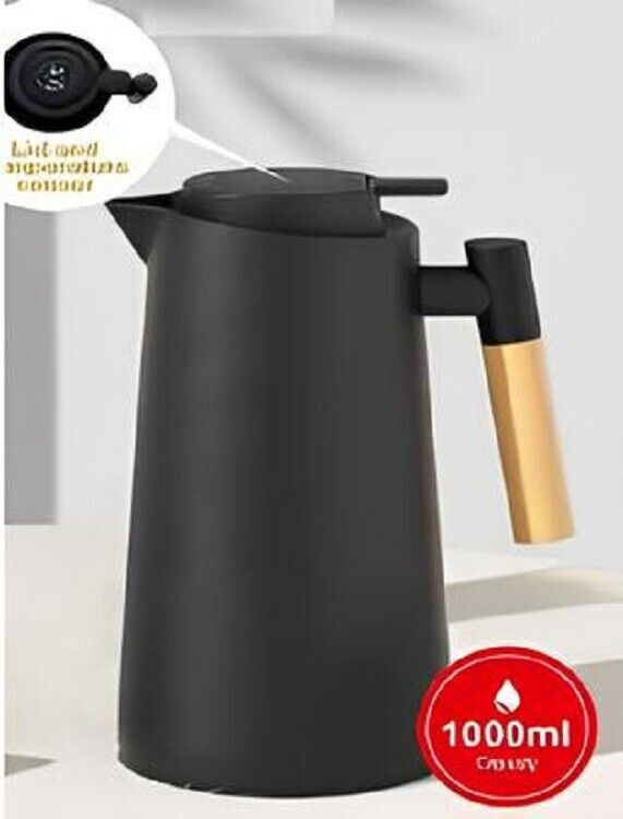 1Litre/1000ml Vacuum Insulated SS Temperature Display Smart Thermos Kettle Black
