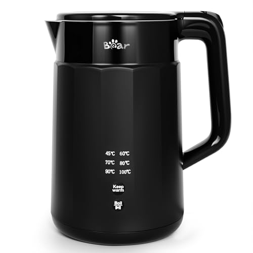 Bear Electric Kettle 1800W-2200W 1.7L 45°C~100°C 6 Temperatures Control Kettle with Auto-shut off and Keep Warm Function,304 Stainless Steel, Dry Protection, BPA Free Smart Fast Boil Black Kettle