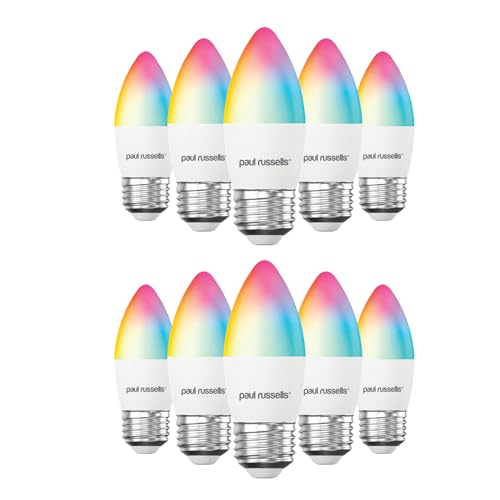 paul russells Smart LED Candle Bulb, 4.8W E27 Edison Screw, 450lm, Works with Amazon Alexa and Google Home Light Bulbs, 40W Energy Saving, No Hub Require, RGBCW 2700K-6500K,Wi-Fi 2.4GHz Only, 10 Packs