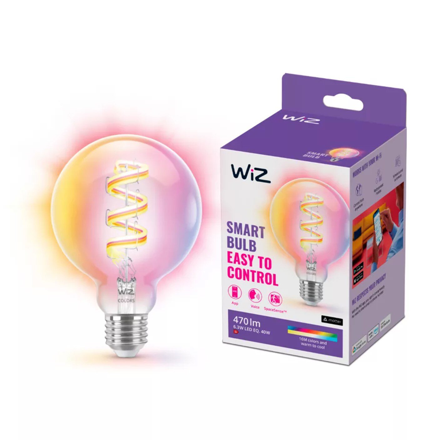 WiZ Smart LED Bulb, Colour [E27 Edison Screw] 40W, Smart LED Connected WiFi Works with Alexa, Wi-Fi/Bluetooth, 40W App Control Livingroom, Bedroom, Easy Plug and Play, packaging may vary