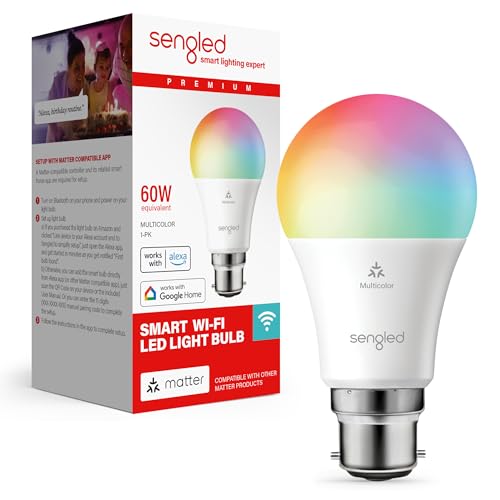 Sengled LED Smart Light Bulb (B22), Matter-Enabled, Multicolour, Works with Alexa, 60W Equivalent, 800LM, Instant Pairing, Matter-Compatible Platform Required, 2.4 GHz, Wi-Fi, 1-Pack