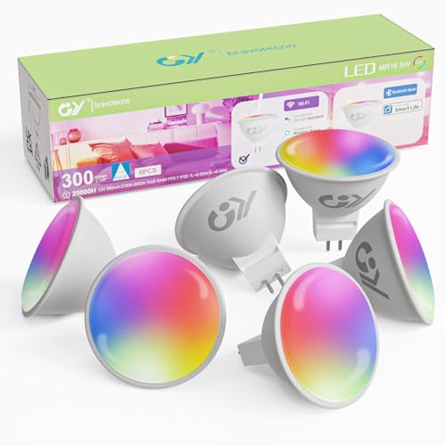 GY MR16 Smart LED Bulb,5W 300lm GU5.3 WiFi LED Light Bulb,Compatible with Alexa/Google Home 2.4 GHz WLAN,Dimmable Warm White Cold White and Multicolour Bulb, Control by APP, 6 PCS