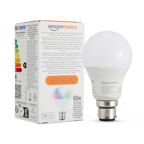 Amazon Basics Smart Multicolor LED Light Bulb, B22 Base, 8W (60W Equivalent), Works with Alexa Only, 1 Pack