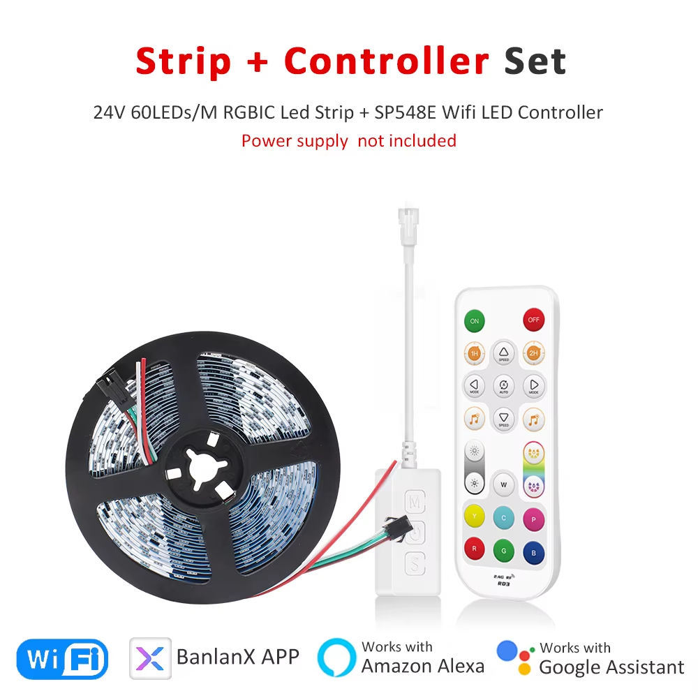 WS2811 RGBIC LED Pixel Light Strips 24V 5M 10M 15M 20M Smart Wifi Alexa Voice Co