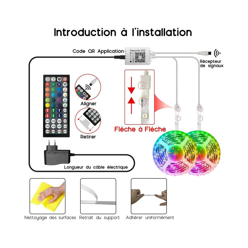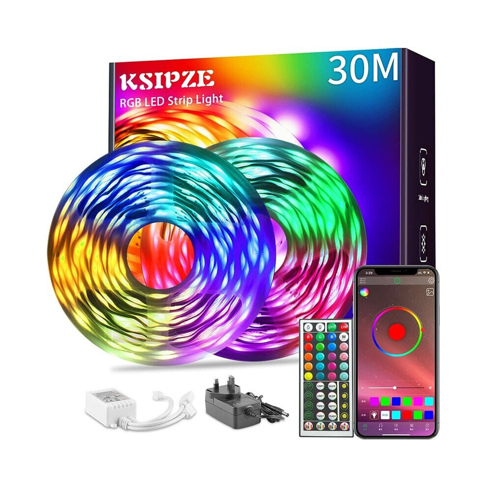 Keepsmile 30M Led Strip Lights (2 Rolls of 15M) Bluetooth Smart App Control Music Sync Color Changing RGB Led Light Strips with Remote,Led Lights
