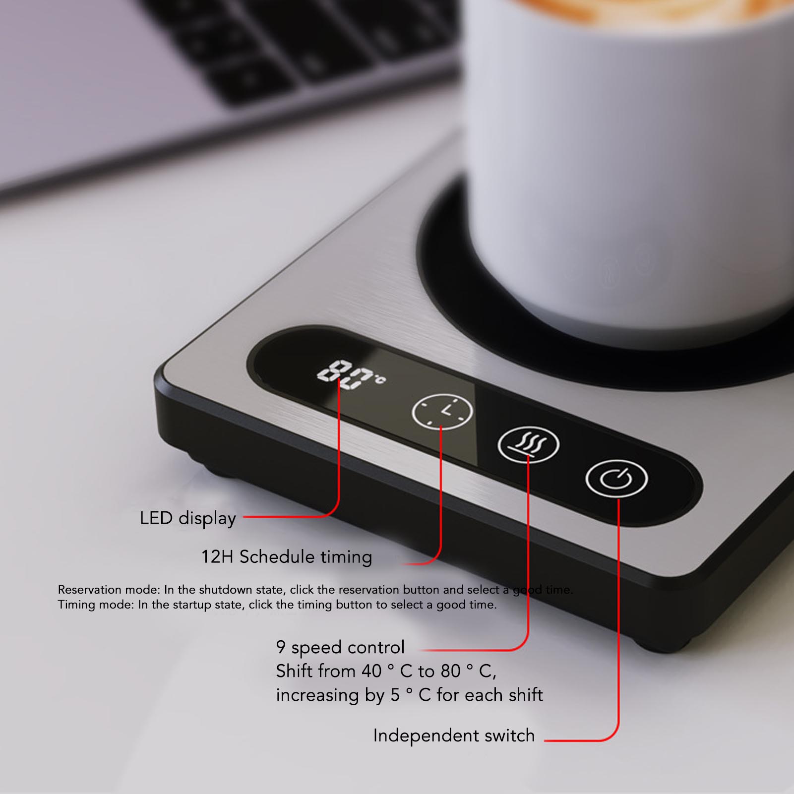 ⊹Coffee Cup Heater 36W Touch Control 12h Timing Smart Coffee Mug Heater For