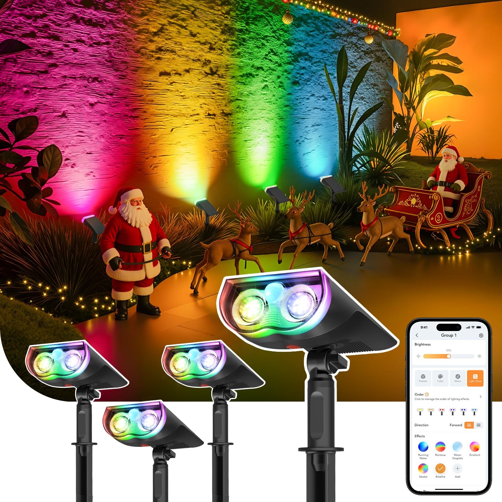 Linkind Outdoor Smart Solar Lights Motion-Sensor SL5, Color Changing Solar Spotlight for Garden Decorations, APP Control Landscape Lights, IP65 Outdoor Spot Lights for Christmas Halloween, 4 Pack