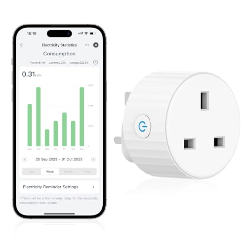 EIGHTREE Smart Plug with Energy Monitoring and Cost Estimation, Alexa Smart WiFi Plugs that Work with Alexa, Google Home and SmartThings, Smart Home Timer Plug Socket UK, 2.4GHz Wi-Fi Only, 13A, 1Pack