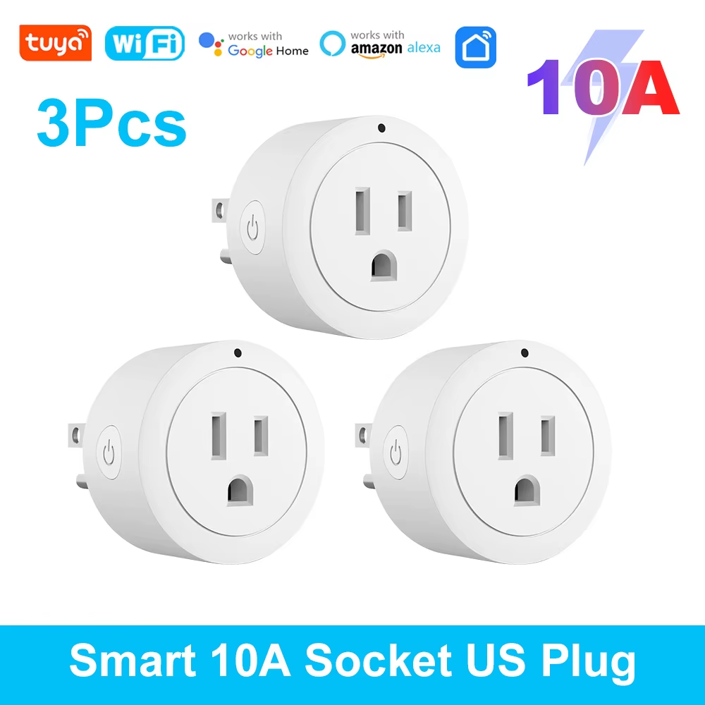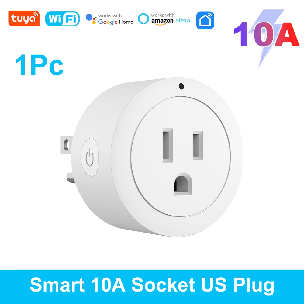10A Tuya Wifi Smart Plug US Socket with Power Monitor Smart Life Timer Function