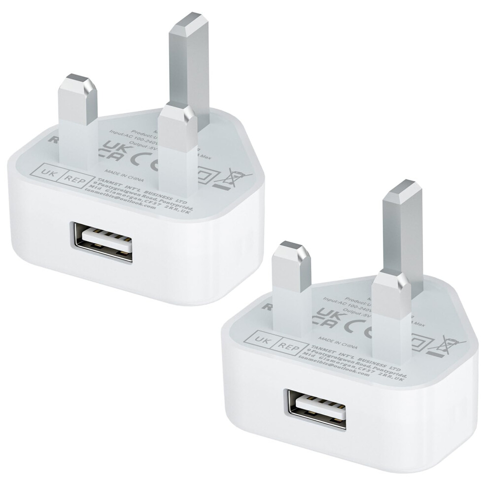 USB Plug,2Pack USB Plug UK Adaptor Phone Charger Mains Charge Dual Port Twin Wall Plugs with Smart IC 5V 1AMP Charging Compatible with iPhone 16 15 1