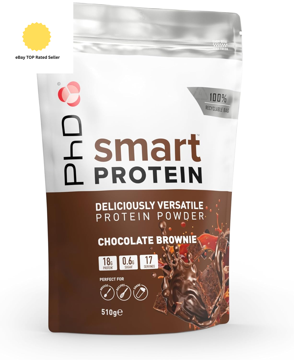 Phd Smart Protein, Versatile Shake, Ideal for Shakes, Baking and Deserts, Chocolate Brownie Flavour, 17 Servings per 510 g Bag