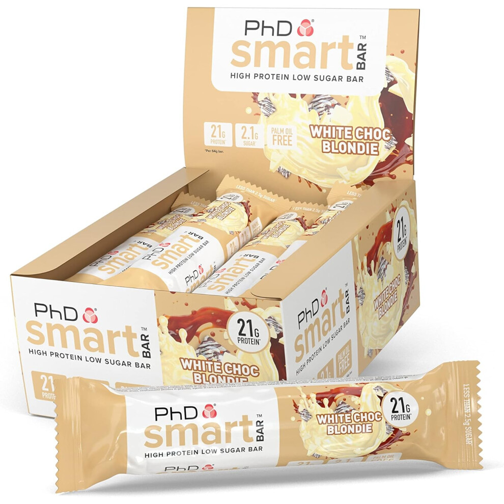 PhD Nutrition Smart Protein Bar, High Protein Low Sugar Protein Snacks, White Chocolate Blondie Flavour, 21 g of Protein, 64 g Bar (12 Pack)