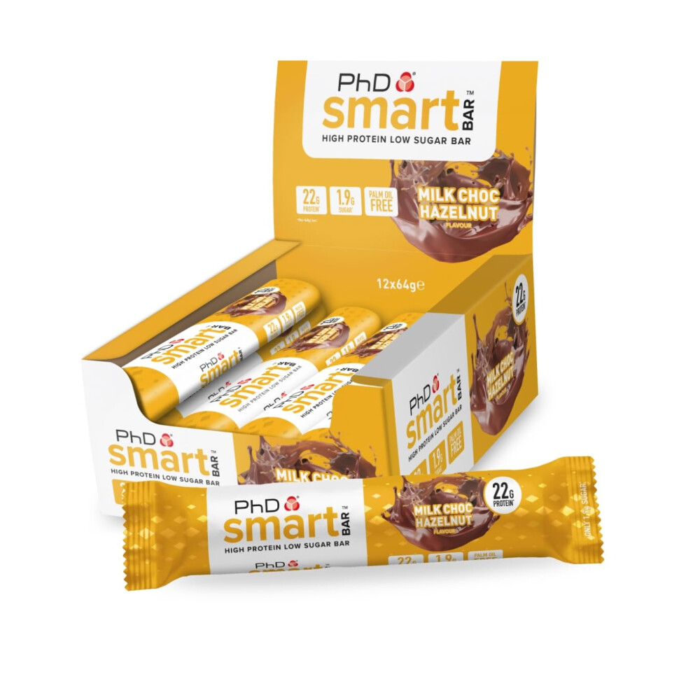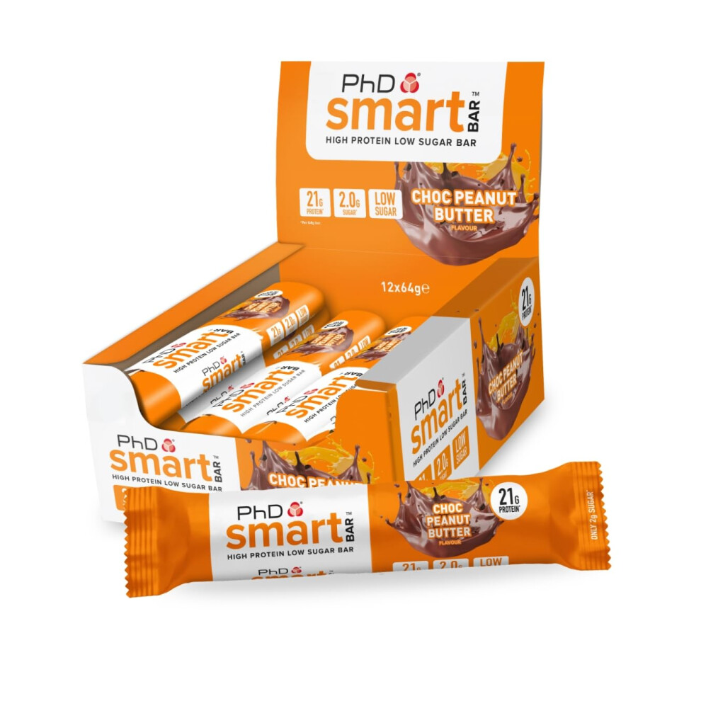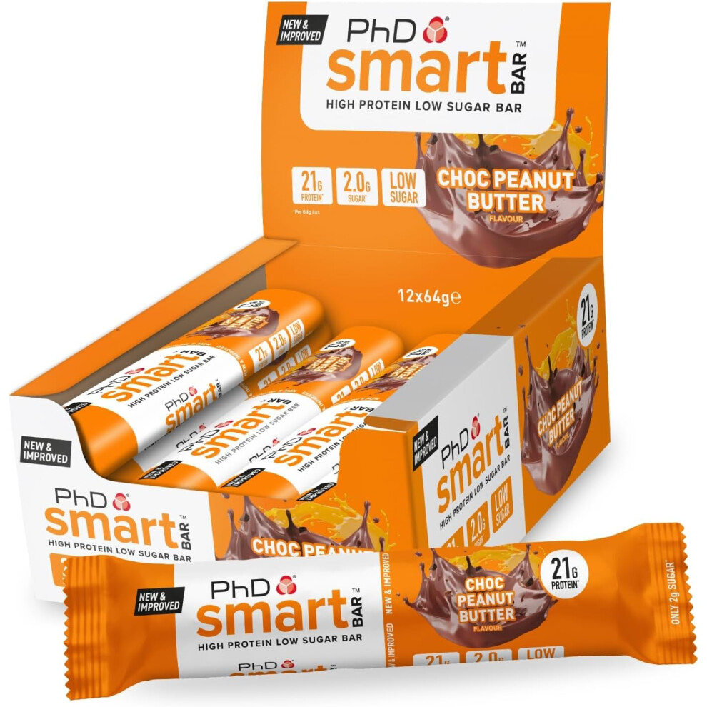 PhD Nutrition Smart Protein Bar, High Protein Low Sugar Protein Snacks, Chocolate Peanut Butter Flavour, 20 g of Protein, 64 g Bar (12 Pack)